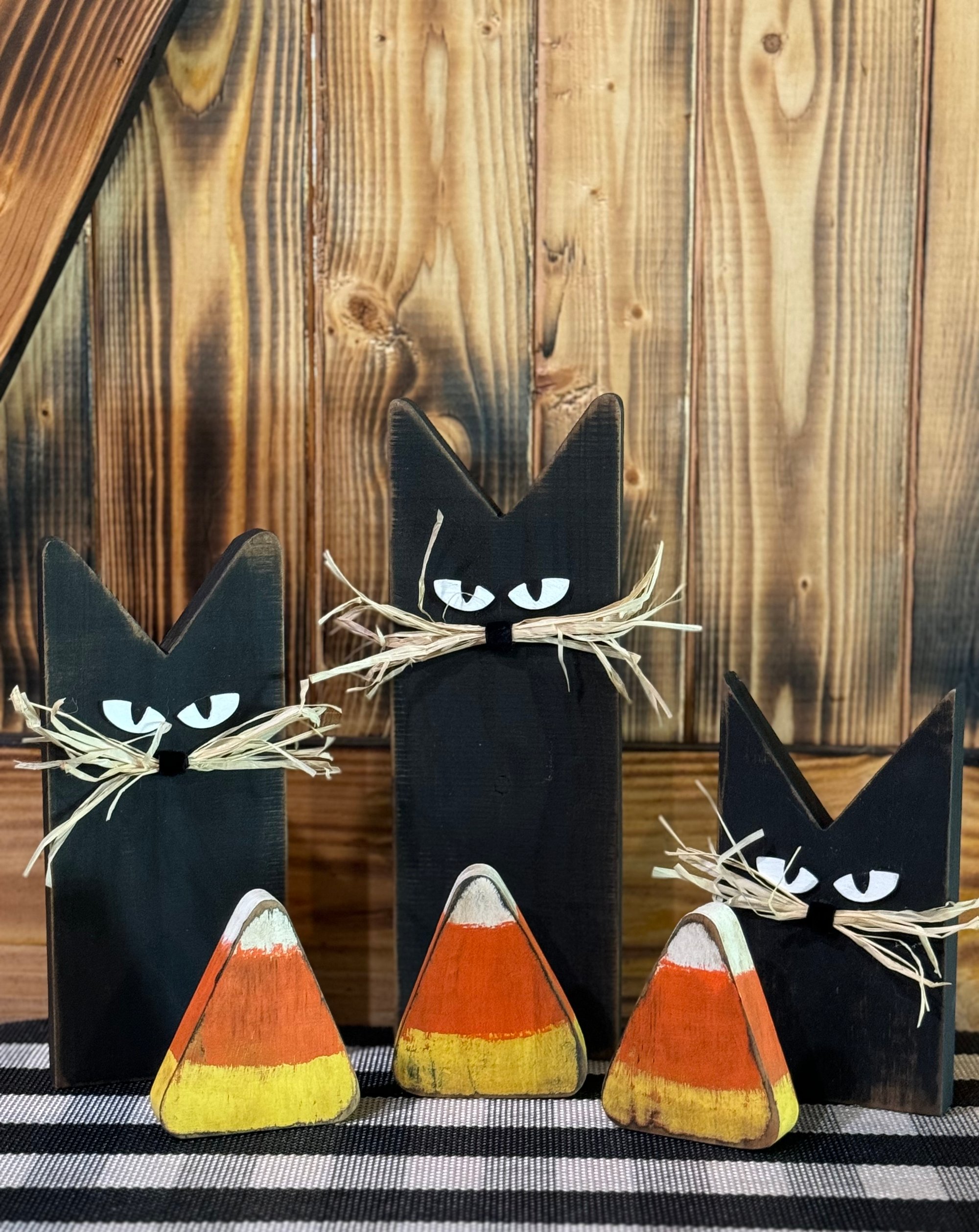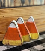 Not all candy corns are created equal and these three are proudly imperfect. Our Rustic Candy Corn Trio is hand-cut, sanded, and painted with purposefully distressed edges for that primitive, timeworn look that screams “I’ve been in the attic with the good Halloween stuff.” Whether tucked into your tiered trays, perched on a shelf beside your favorite fall mugs, or nestled into a farmhouse book stack, these little guys bring cozy, handcrafted charm to any autumn setup.